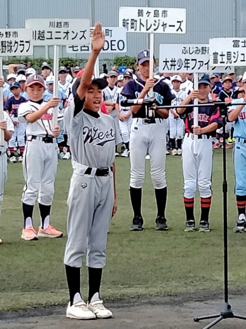 戦況:ウィナーズ少年野球倶楽部は高円宮賜杯第44回全日本学童軟式野球大会埼玉県予選会の志木市代表チームです。第41回埼玉南部少年野球ジュニア大会でもBEST8に進出しました。ウエストとの対戦後、朝霞10小(ガッツナインのホームグラウンド)に移動して15時から大井少年ファイターズと対戦し、3-0負けました。前審は13時から同所で志木二小メイツ−三芳ドリームズ戦ですから松本旗とダブリます。三芳ドリームズが15-11勝って、志木市勢は敗退、準決勝は三芳ドリームズ−大井少年ファイターズの東入間対決、もう一つの準決勝は栗原ビーバーズ−西堀ファルコンズの新座対決となりました。