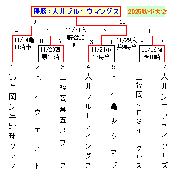 | 11月16日 | 西原小学校 | 栄和クラブ | 9-1 | 大井ウエスト |