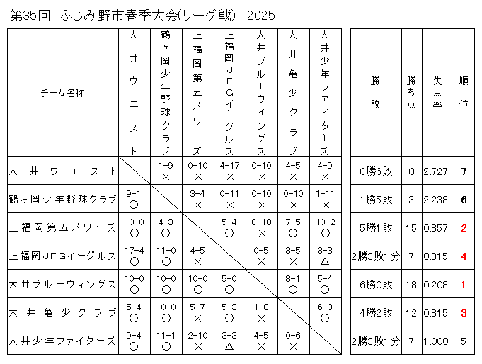 上福岡第五パワーズと大井ブルーウィングス、大井亀少クラブはチャンピオンリーグ進出確定です