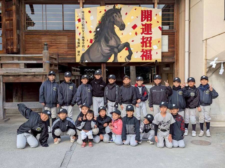 2025年1月12日(日)、東松山の箭弓稲荷神社に初詣、帰ってきて西原小学校でグラウンド開き、記録会(ベーラン、遠投)、今年の目標(夢)の発表、その後初練習を行いました
