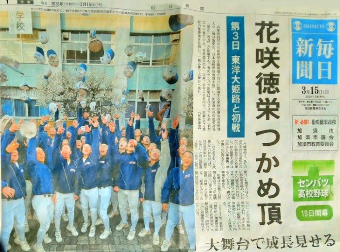 春のセンバツは昨年の秋季大会の結果などから選ばれた高校が出場する大会です。2023年、2024年と春のセンバツ甲子園に埼玉県勢の姿が無いサビシイ春でしたが、昨年は浦和実が変則モーションで話題になったエース石戸を擁してBEST4まで進む大活躍、準決勝で智弁和歌山に0-5敗れましたが、埼玉県民を大いに喜ばせました。優勝は準決勝で健大高崎(群馬)を5-1下し、決勝でも総合力ではどう見ても智弁和歌山より横浜が上との予想通り、ヤッパリ横浜が11-4で勝って優勝しました。新チームになって無敗の20連勝、明治神宮大会、センバツと秋春連覇の強さでした。今年埼玉県からは花咲徳栄(加須市)が出場します。