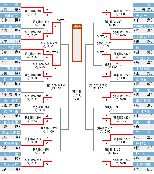 明治神宮大会決勝と同じ対戦となった神戸国際大付−九州国際大付、激戦でした。2-2タイブレークから10回共に0点、11回表神戸国際大付が犠牲フライで1点勝ち越し、その裏九州国際大付は二死となりましたが、3番吉田秀成がレフトへサヨナラ二塁打、明治神宮大会決勝と同じ結果になりました。大垣日大−近江も0-0タイブレークから大垣日大2点、近江の反撃を1点に抑えて大垣日大勝利。3月24日(火)9時からの大阪桐蔭4-0熊本工戦で一回戦が終わりました。