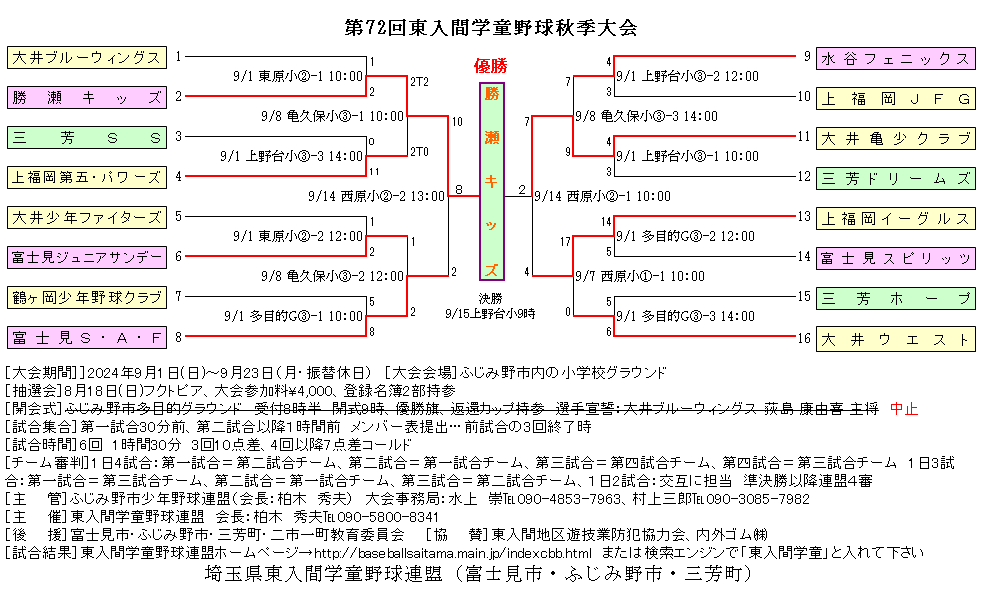 勝瀬キッズ | 富士見ジュニアサンデー | 上福岡イーグルス | |
