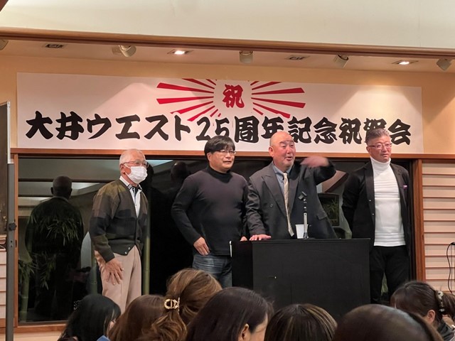 大井ウエストは2000年2月に三角小学校の大井トライアングルと西原小学校の大井ニッショウが合併して発足しました。2020年2月に満20年を迎え、21年目に入ることから、これを記念して2020年2月15日(土)に祝賀会を行いました ウエスト20周年祝賀会 あれから5年経ち、2025年2月8日(土)うどんの『美可美』(ふじみ野市亀久保3丁目12-46)で会費5千5百円で25周年祝賀会を行いました。今回も90名弱の大盛会でした。